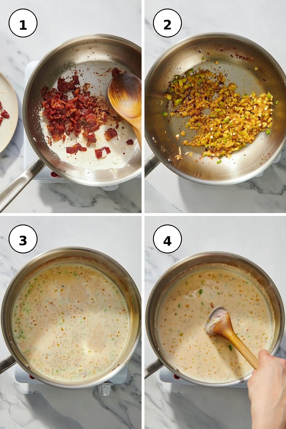 1. In a saucepan over medium heat, cook the bacon until it’s crisp, about 5 minutes, allowing the aroma to fill your kitchen.