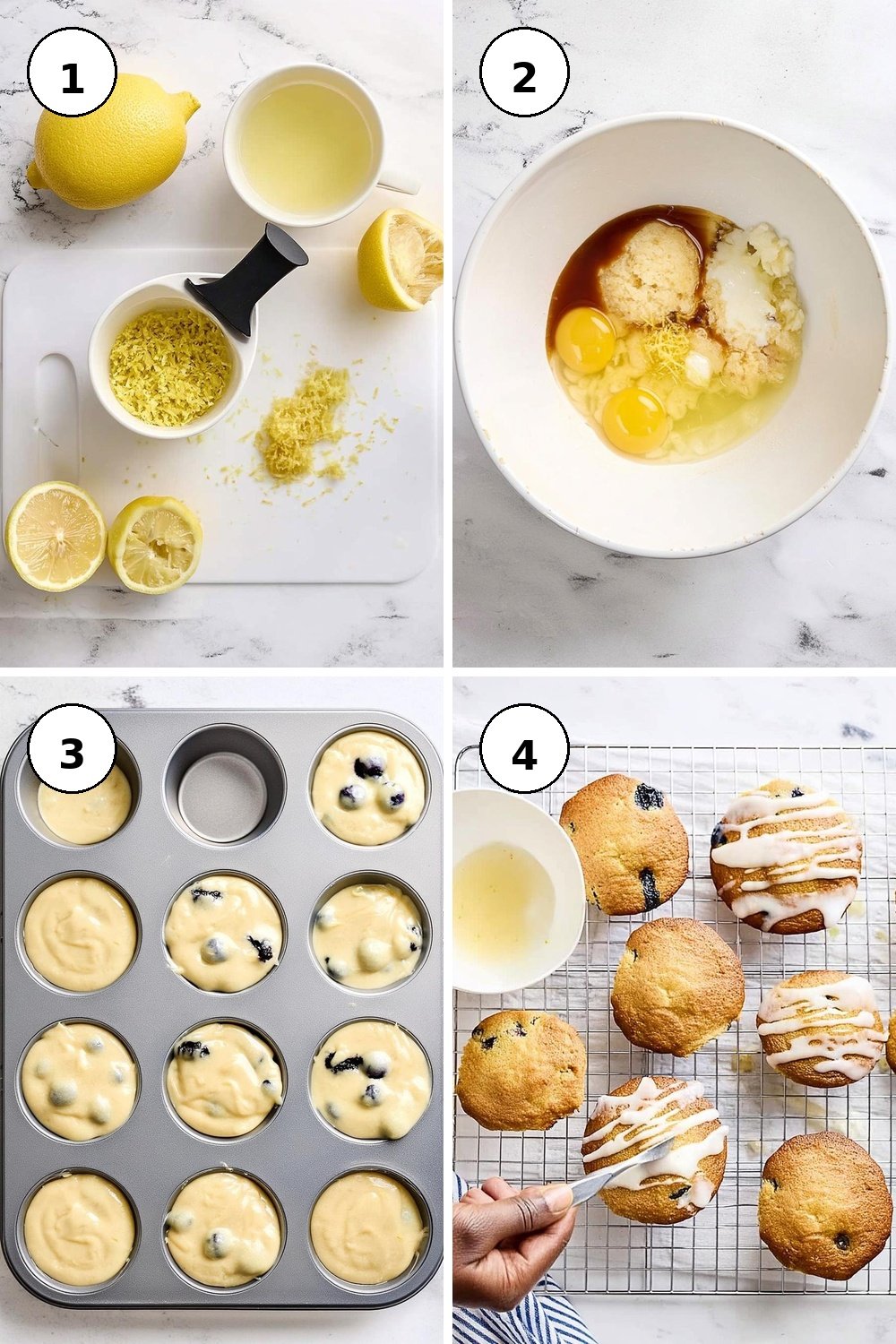 - Mix the powdered sugar, lemon juice, and zest to make the glaze. Drizzle over cooled muffins.