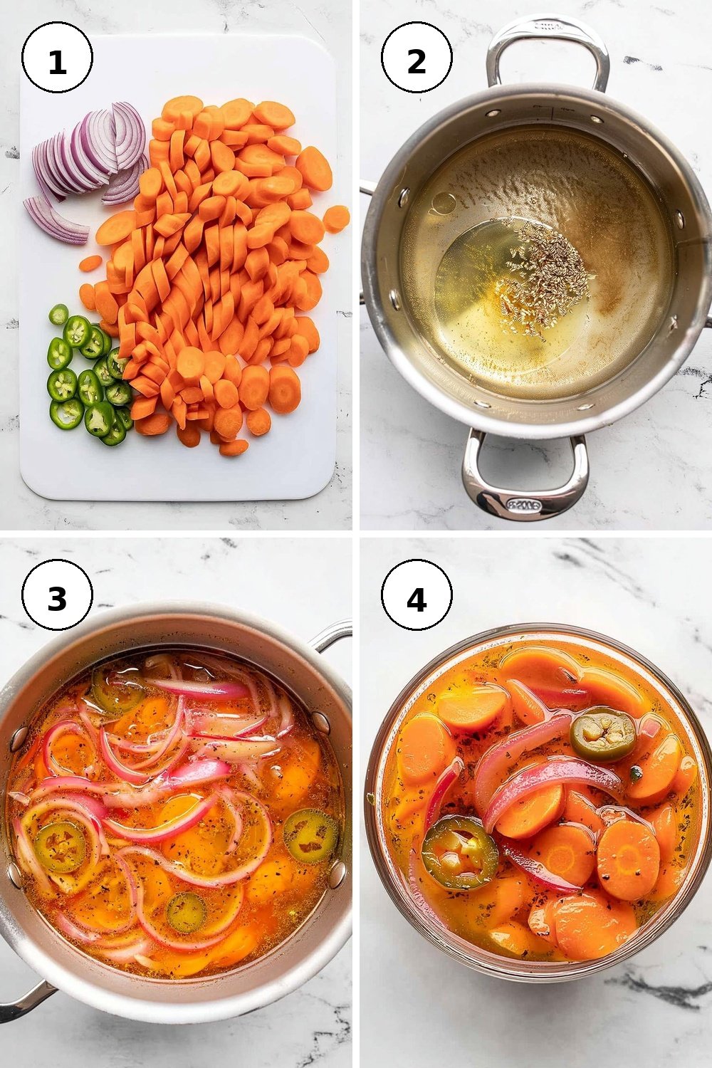 1. Begin by peeling and slicing 1 lb. of carrots into ¼-inch thick pieces, ensuring they’re uniform for even pickling.